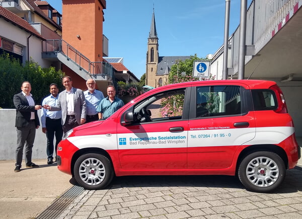 Zusätzlich können sich die Mitarbeiter der Sozialstation seit 2018 über gleich zwei neue Dienstfahrzeuge im Wert von insgesamt rund 20.000 Euro freuen. Im Juli dieses Jahres übergab der neue Vorsitzende des Ökumenischen Krankenpflegevereins, Oberbürgermeister Sebastian Frei, eines der Fahrzeuge offiziell an den geschäftsführenden Vorstand der Sozialstation, Johannes Klopprogge.